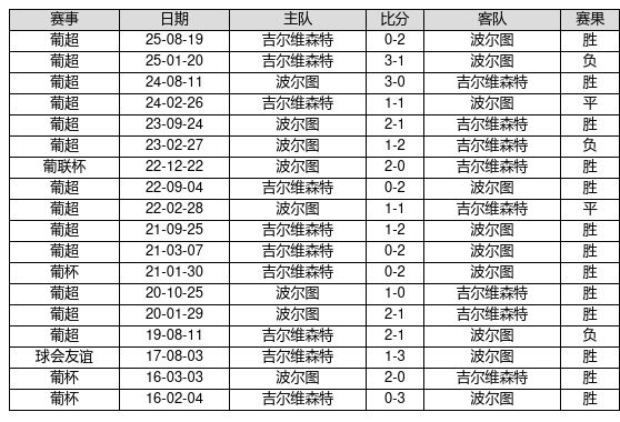 波尔图 VS 吉尔维森特两队近10年的交战次数为18场,波尔图13胜2平3负,赢球概率为72.2%,平局概率为11.1%,输球概率为16.7%。