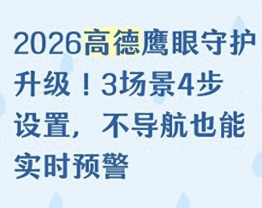 好在2026年一开年,高德地图对鹰眼守护系统做了全面升级,最实用的一点就是:不用设目的地、不用启动导航,只要打开APP、开启对应设置,就能全程实时预警。相当于给车里配了一位不说话、不打扰、全程在线的“安全副驾”,前方风险提前报、突发状况早提醒,把很多事故掐灭在萌芽里。