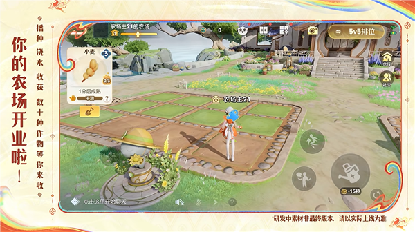 新曝光的农场玩法,让玩家可以在游戏内开辟专属田地,种植各类作物,还能进行浇水、施肥、收割等操作,甚至可以和好友互动偷菜。