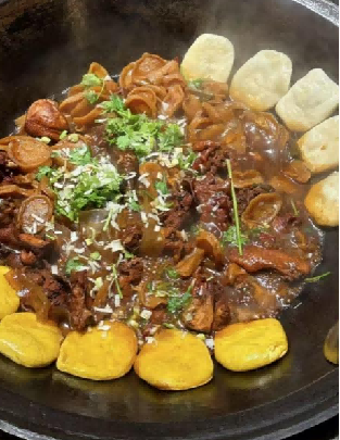菜品样式多,我们选的铁锅炖鸡,鸡特别软烂入味。粉条也特别好吃,味道很不错非常推荐!!周边还有咖啡店很不错~