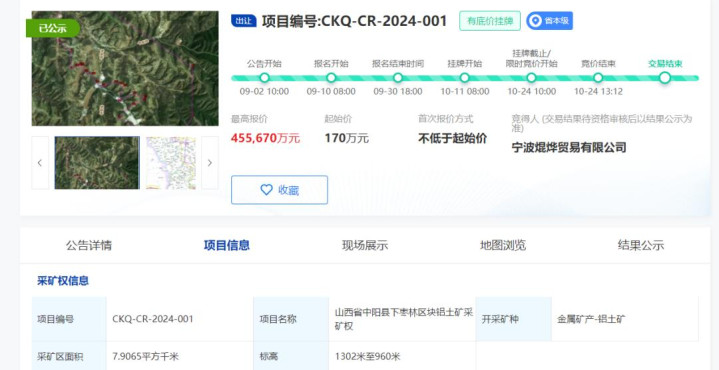 信发集团斥资16.12亿元,拿下山西沁源县一块铝土矿探矿权。